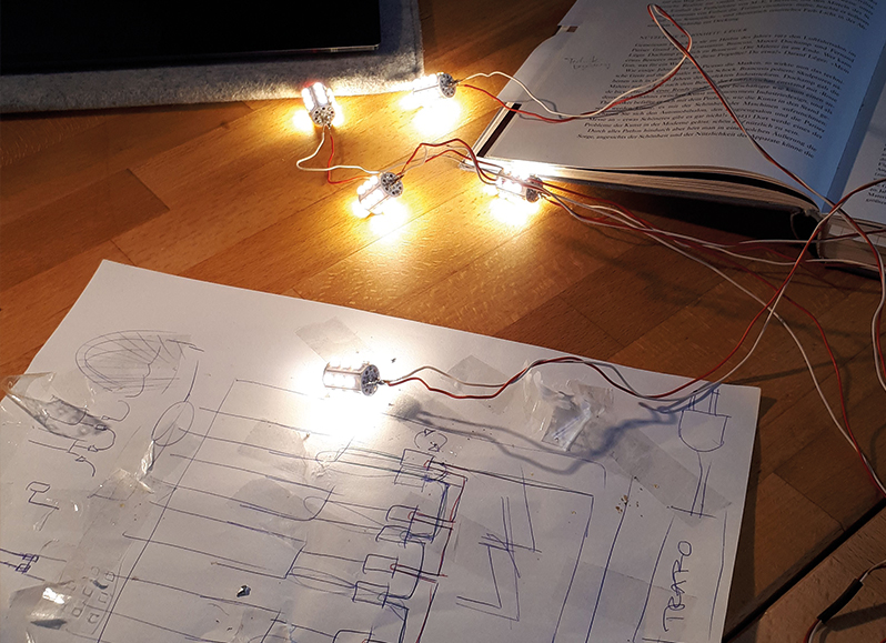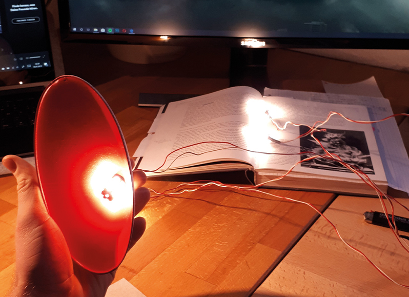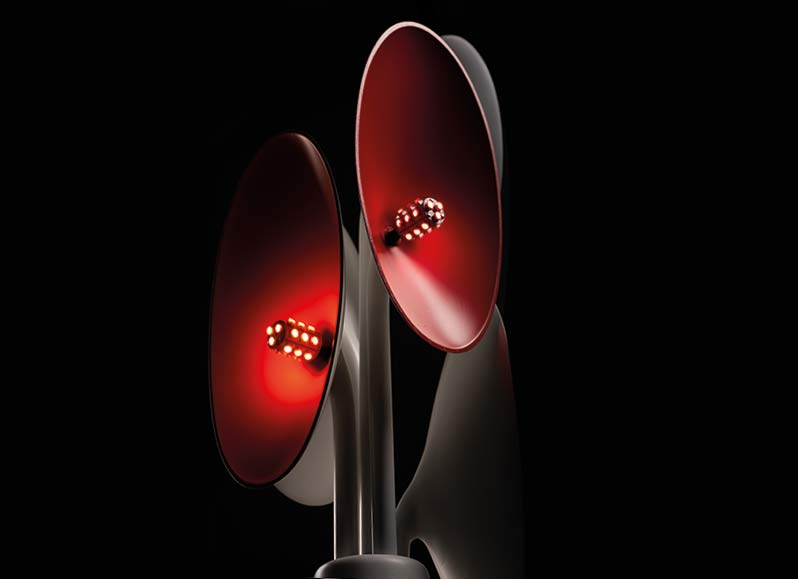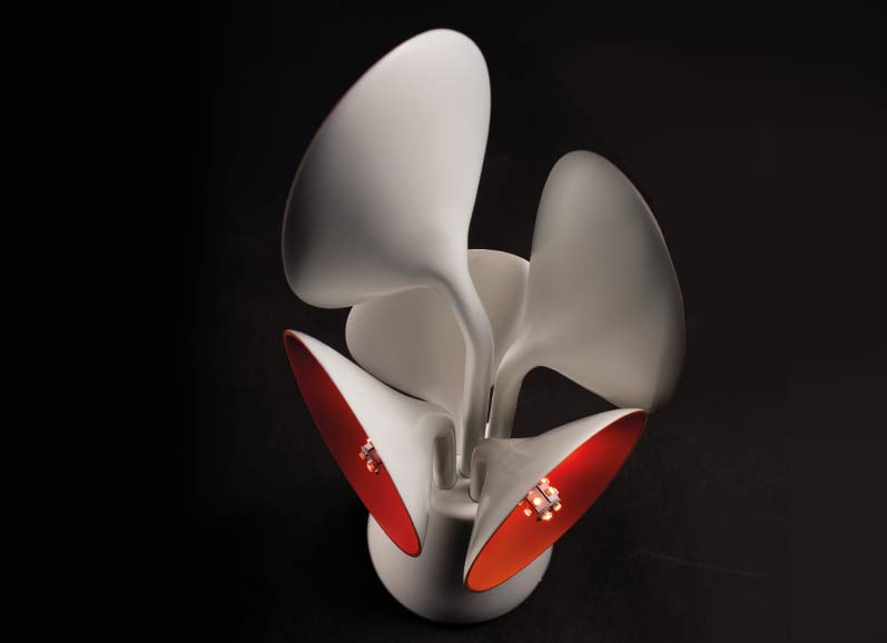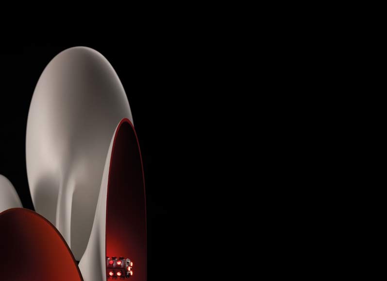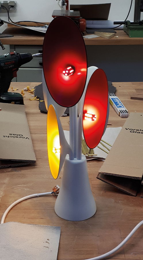 the colour and brightness should also support the impression of the shape of the lamp. Everything should be as extroverted as possible