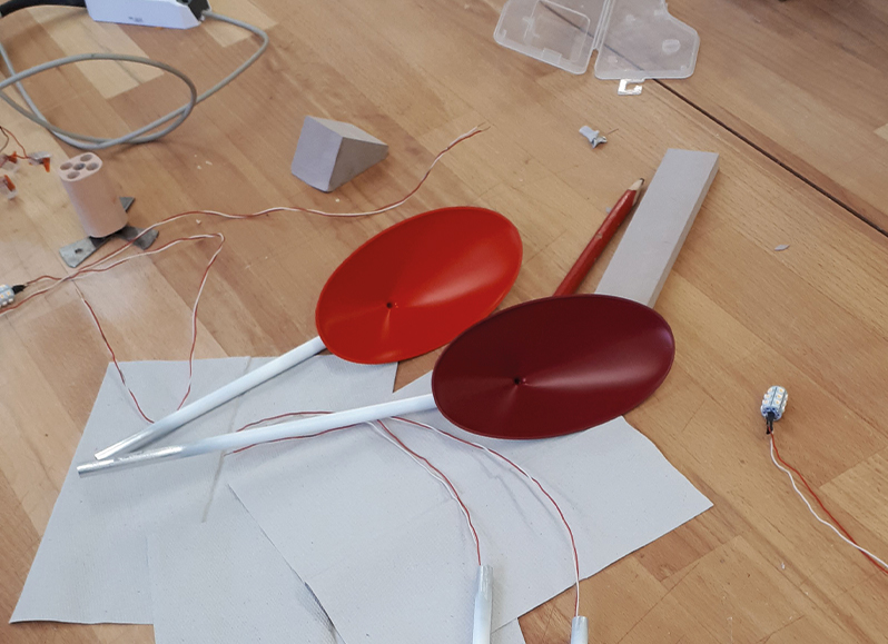Design a lamp which represents our main character – trait. I chose the word „extroverted“ for myself. The lamp should be a mirror of ourselves.